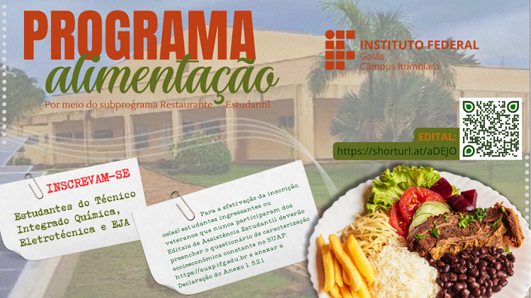 Estudantes do Técnico Integrado Integral podem se inscrever no programa que garante acesso gratuito ao Refeitório do Câmpus Itumbiara
