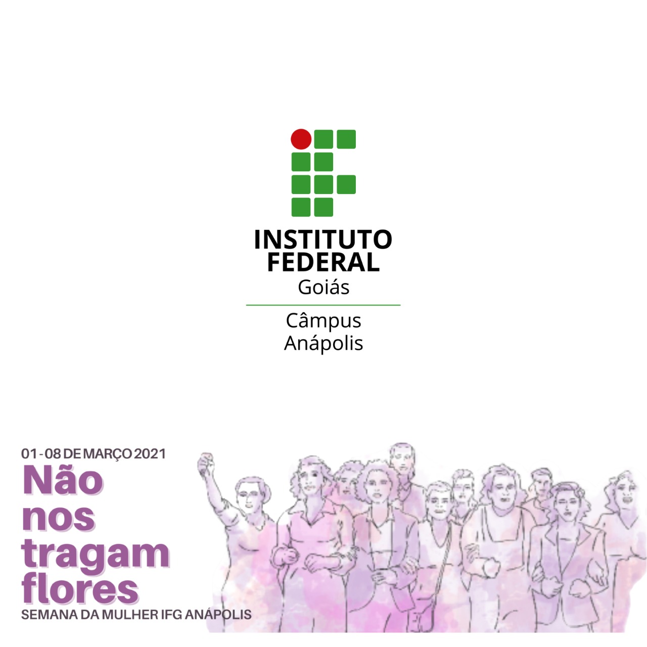 Começa nesta segunda-feira, 01, a programação da Semana da Mulher do Instituto Federal de Goiás (IFG) - Câmpus Anápolis, promovida em conjunto com a Coletiva Feminista Manas entre os dias 01 e 08 de março. O evento será totalmente virtual e terá atividades realizadas via Google Meet e no canal do YouTube do Câmpus. As inscrições podem ser feitas no site do GCI: www.computacaoifg.com.br/gci A mesa de abertura oficial será realizada hoje, 01, às 19 horas no link a seguir: https://youtu.be/wnN67S6yDP0