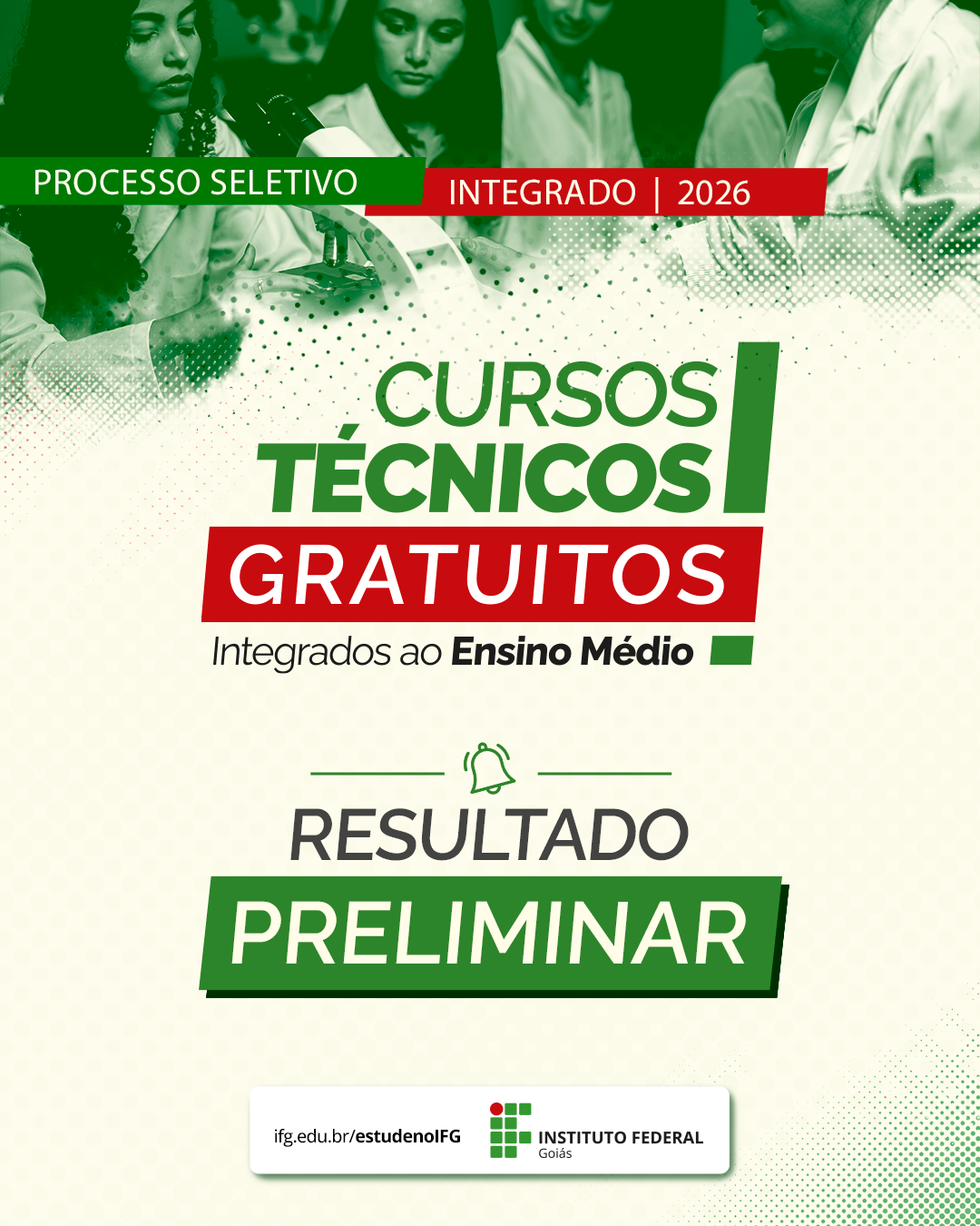 Resultado Preliminar da seleção dos cursos técnicos integrados ao Ensino Médio.