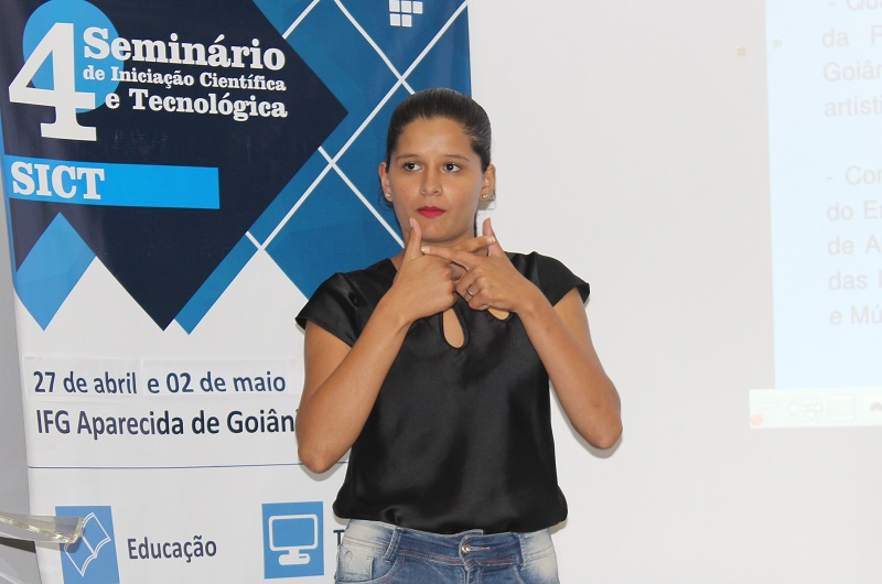 Alunas surdas apresentam projeto de pesquisa no Seminário de Iniciação Científica do IFG Aparecida