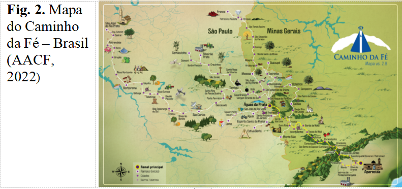 De acordo com a pesquisa, o Caminho da Fé, que leva peregrinos ao Santuário Nacional de Nossa Senhora Aparecida, em Aparecida do Norte-SP, se originou de fluxos espontâneos de devotos católicos que caminhavam até uma igreja – que posteriormente veio a ser o santuário – movidos pela fé em Nossa Senhora Aparecida, padroeira do Brasil. Com isso, a religiosidade é uma das características que aproxima os Caminhos da Fé ao de Santiago.