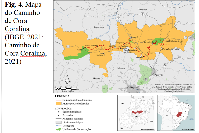 Mapa do Caminho de Cora Coralina (IBGE), conforme consta no artigo (Re)invenção do Caminho de Santiago entre a religião e a poesia: Caminho da Fé e Caminho de Cora Coralina no Brasil