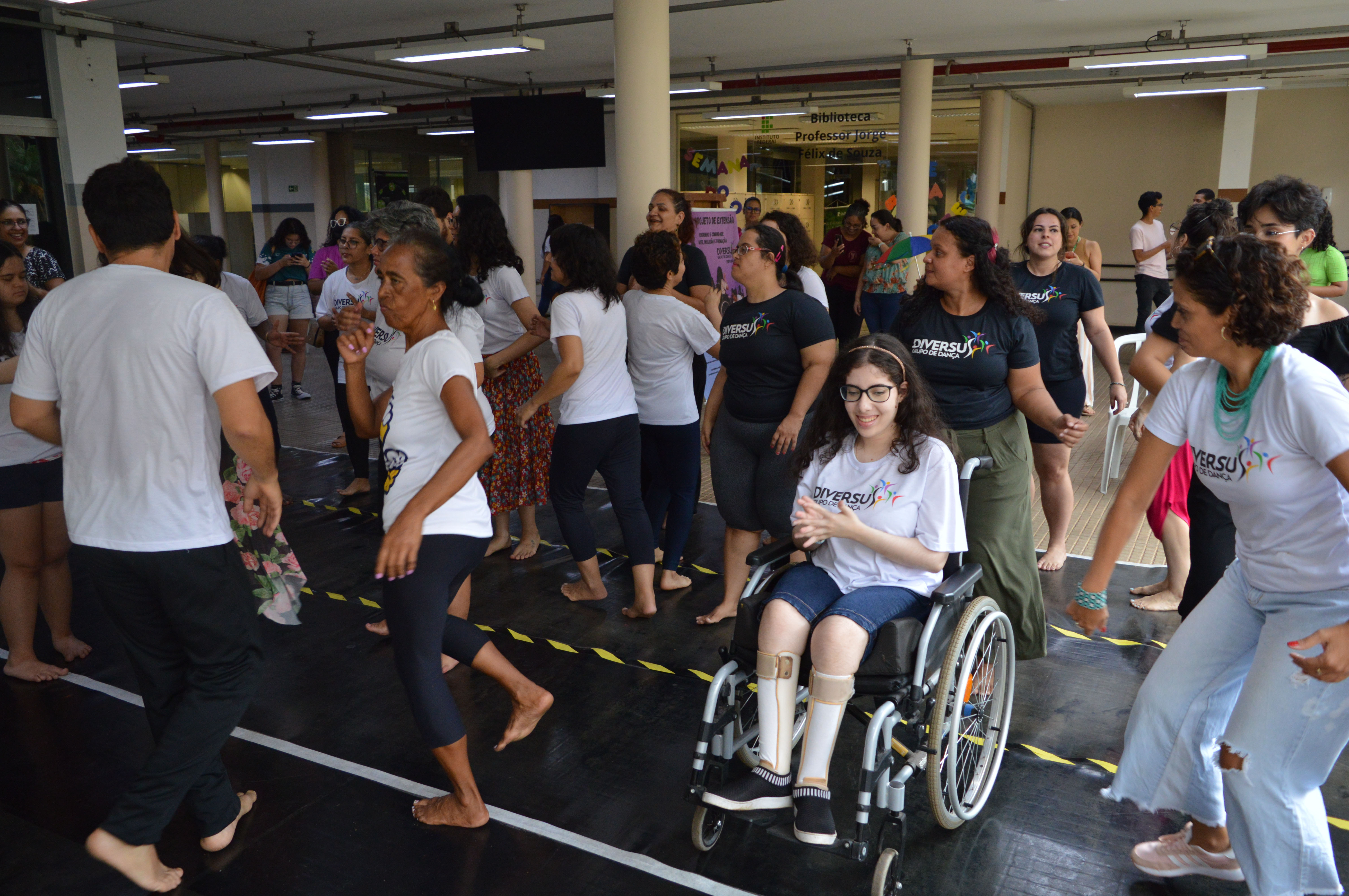 Apresentação de dança do projeto de extensão Chorinho e Comunidade juntou bailarinos do Grupo Diversus (UFG), comunidade do Câmpus Goiânia e visitantes da Secitec em uma grande roda de Choro