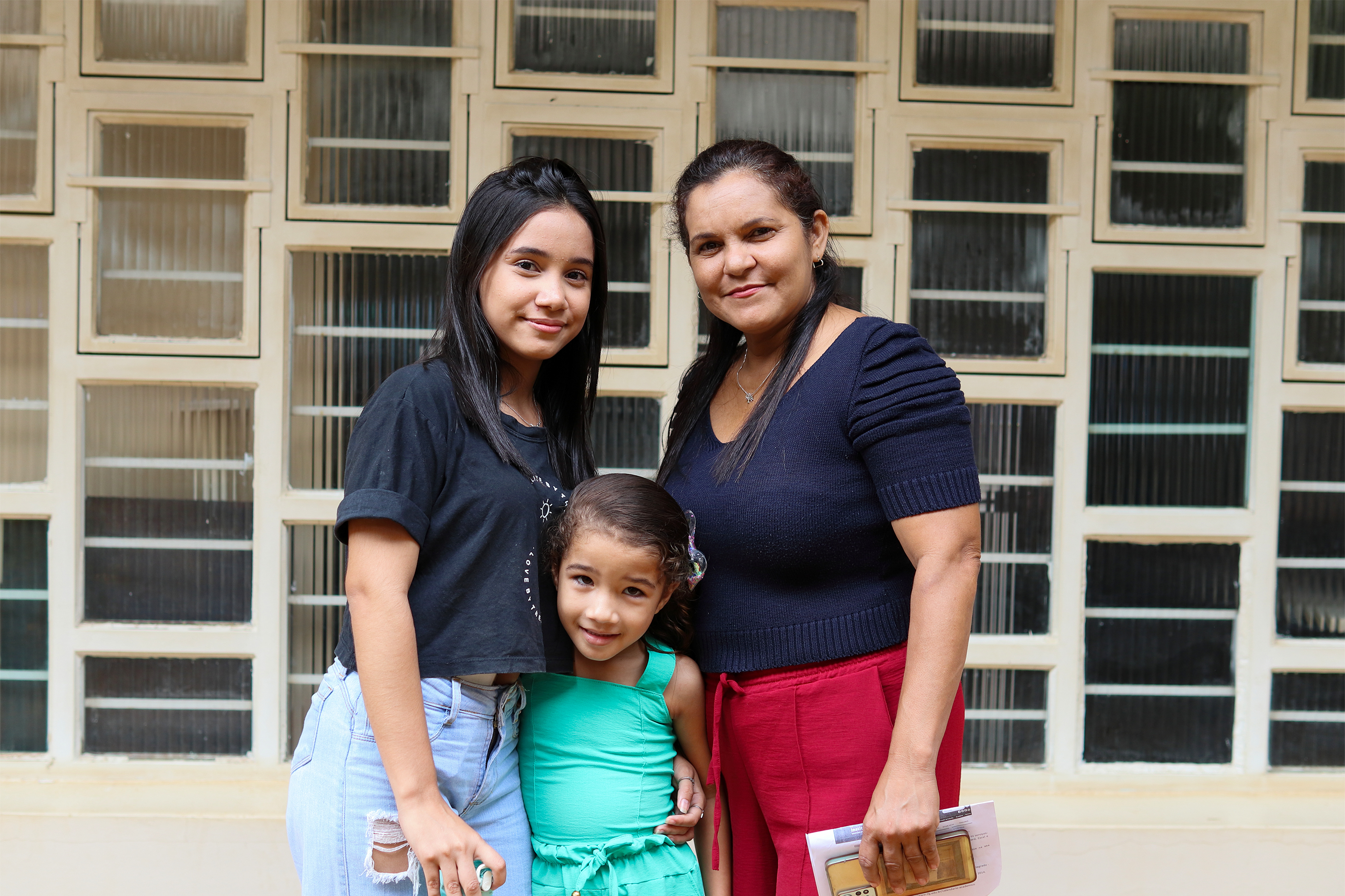 A aluna ingressante no técnico integrado em Edificações, Lorena Cristina Borges, e sua mãe, a senhora Célia Rodrigues Borges, e mais a irmã Celina, de apenas 5 anos.