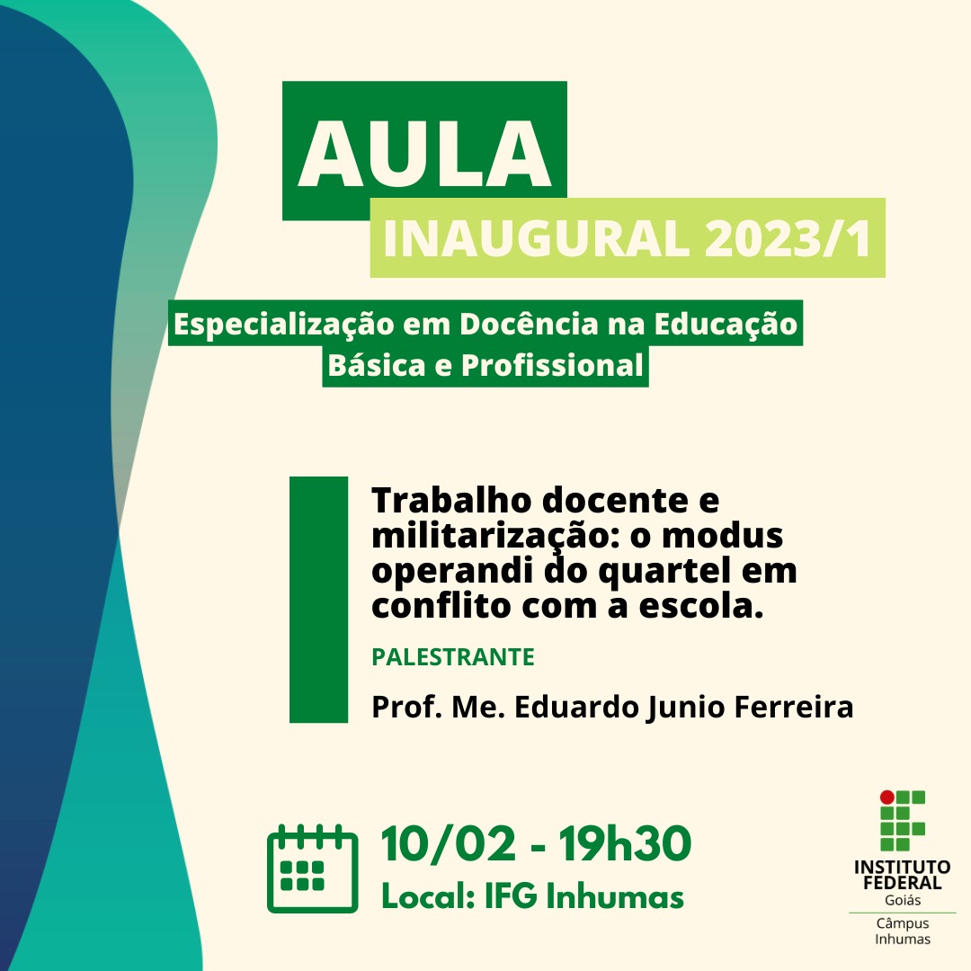 Aula inaugural da Especialização em Docência na Educação Básica e Profissional será nesta sexta-feira, 10/2