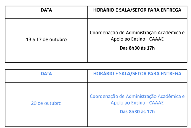 Dessa maneira seguem as datas e horários em que o Câmpus Formosa, situado na Rua 64 esquina com Rua 11, s/n Setor Expansão Parque Lago, estará recebendo esses documentos.
