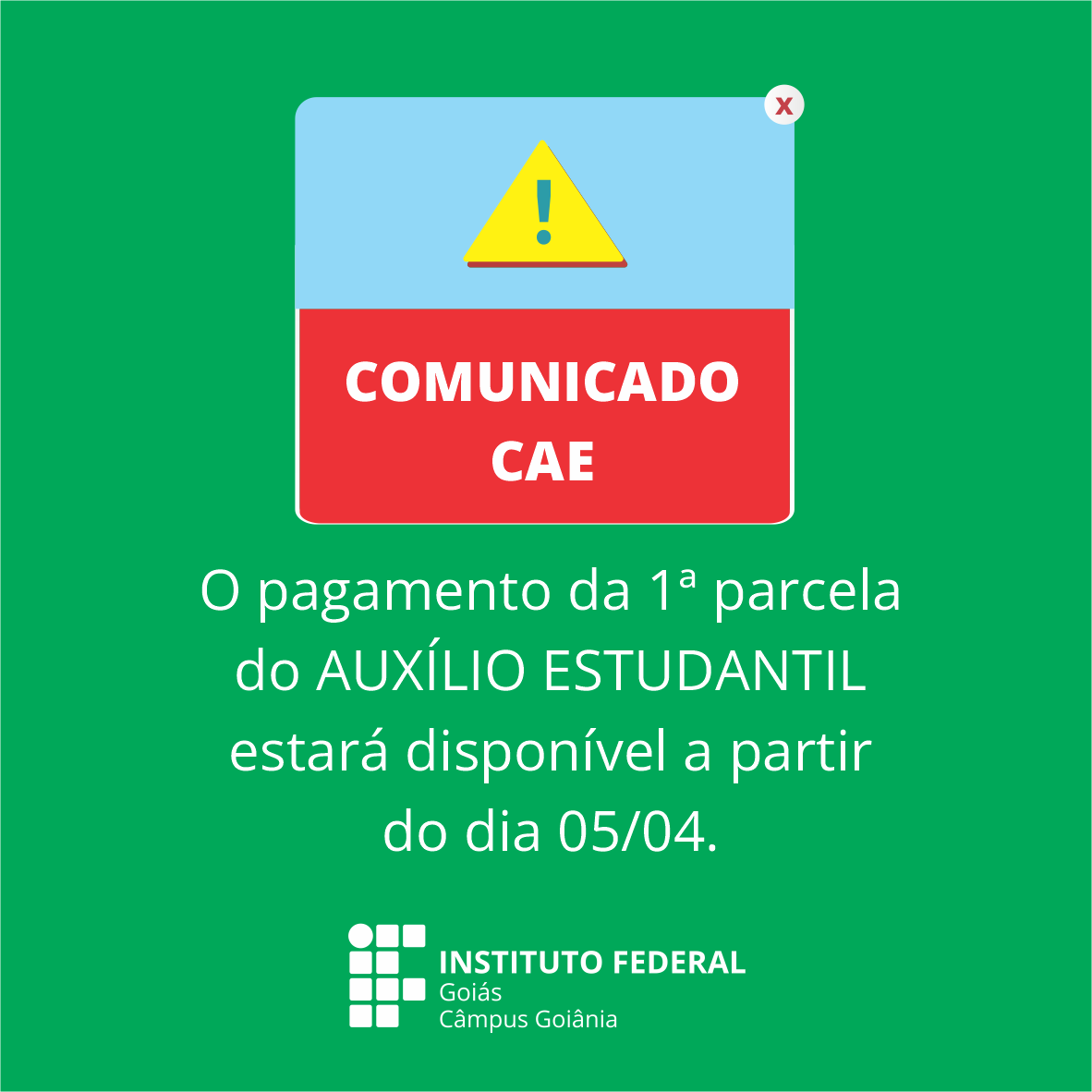 Atenção alunos(as), A Coordenação de Assistência ao Estudante (CAE) informa que o pagamento do auxílio referente à primeira parcela de 2023 será disponibilizado a partir de...