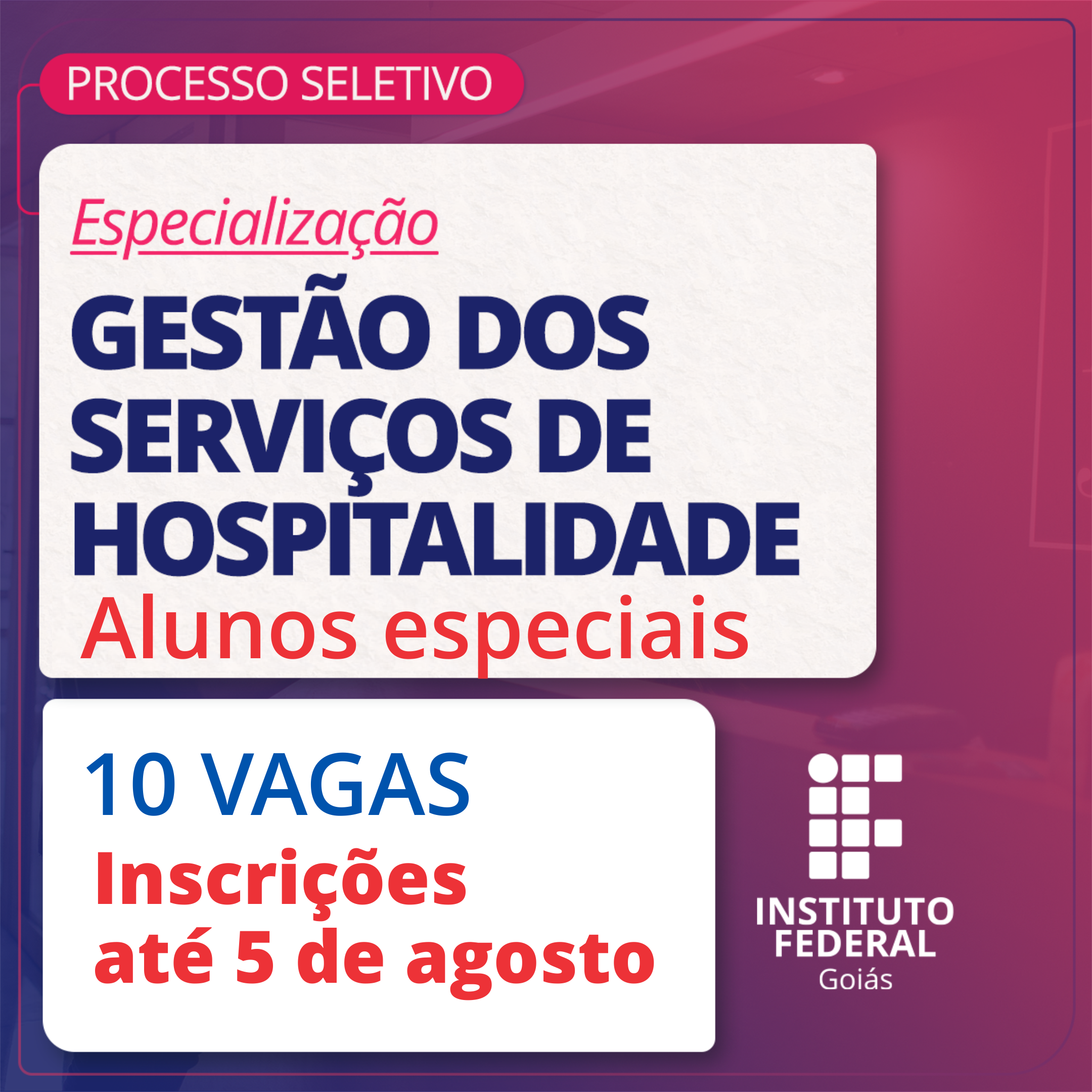 O Câmpus Goiânia do Instituto Federal de Goiás (IFG) publicou edital de seleção de alunos especiais (não-regulares) para a Pós-Graduação Lato Sensu - Especialização em Gestão...