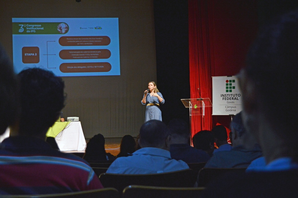 A abertura da Semana de Planejamento Pedagógico 2026/1 do Câmpus Goiânia incluiu ainda a apresentação da metodologia do 3º Congresso Institucional do IFG, evento que será responsável por formular os novos documentos estratégicos do IFG: o Plano de Desenvolvimento Institucional (PDI) e o Projeto Político-Pedagógico Institucional (PPPI) para o período de 2027 a 2031.