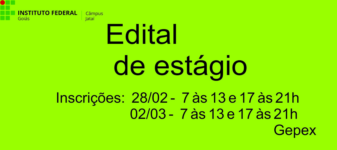 Estão abertas as inscrições para estágio curricular obrigatório não-remunerado no Instituto Federal de Goiás (IFG) – Câmpus Jataí. Serão oferecidas 34 vagas, sendo 11 para ampla concorrência, 10 para PCDs e 3 para PPIs. Podem concorrer estudantes regularmente matriculados nos cursos do IFG. Para concorrer às vagas de estágio os estudantes interessados comparecer na Gerência de...