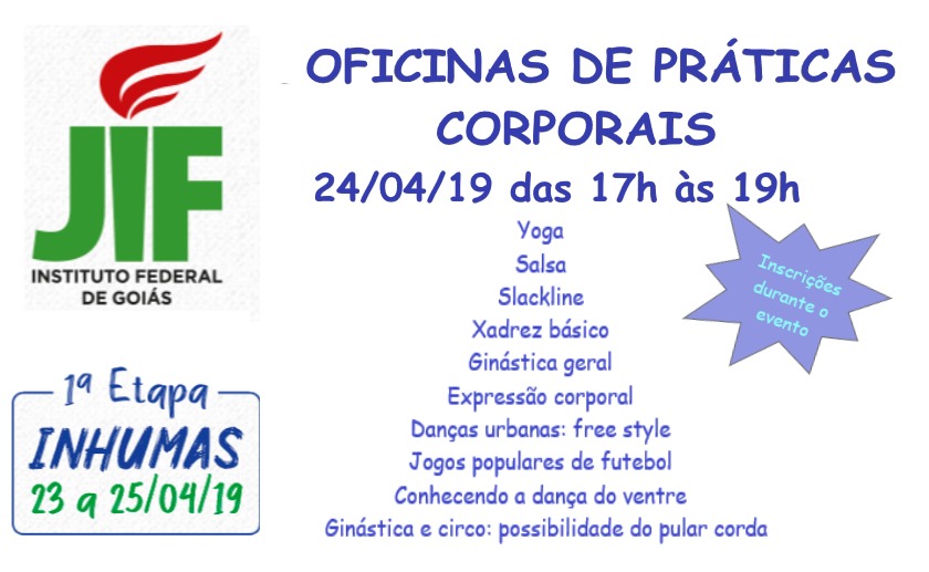 Oficinas de Práticas Corporais - 24/04/2019 - Das 17h às 19h - Inscrições durante o Evento