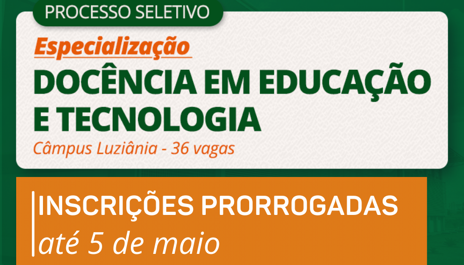 Inscrições prorrogadas para seleção do curso de especialização em Docência em Educação e Tecnologia