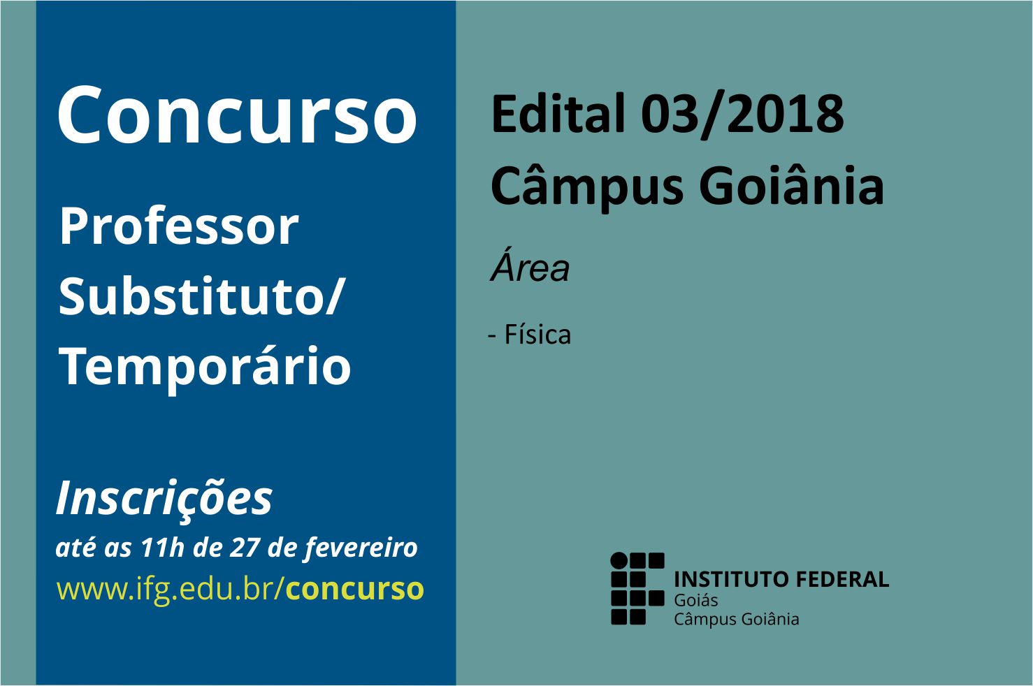 Câmpus Goiânia abre duas vagas para professores substitutos/temporários