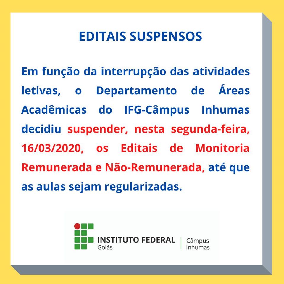 Departamento de Áreas Acadêmicas suspende Editais de Monitoria