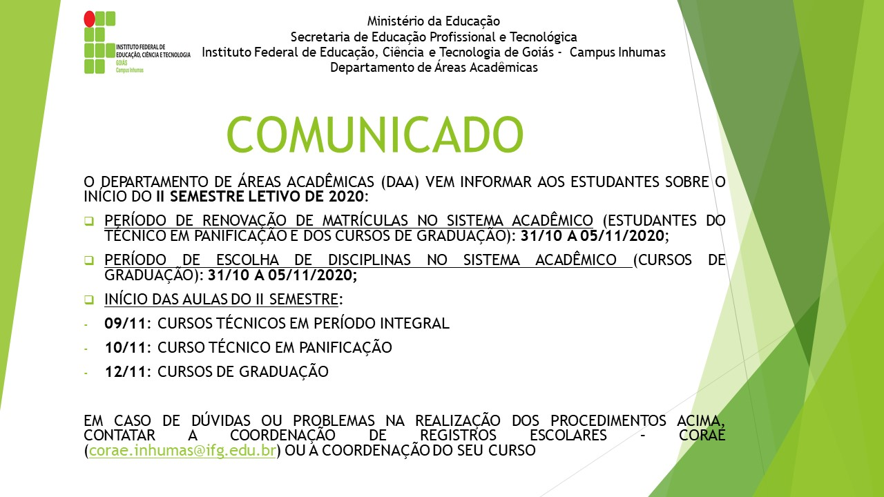 Comunicado do DAA sobre o início do 2º semestre letivo de 2020