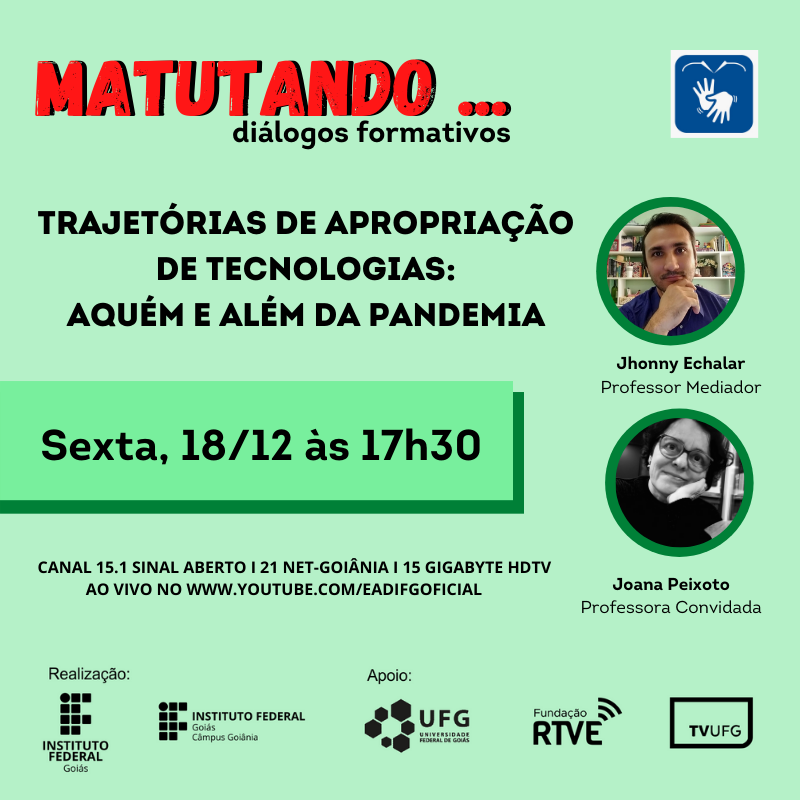 Horário: 17h30 | Transmissão: TV UFG, canal no Youtube da EAD do IFG