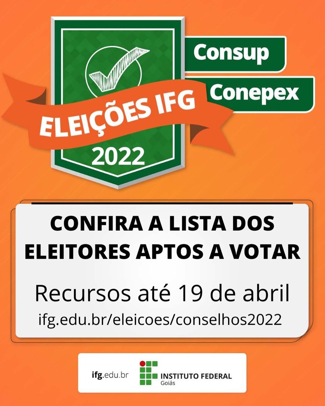 Para mais informações e acesso aos links das listas, acesse o site das eleições: https://www.ifg.edu.br/eleicoes/conselhos2022.