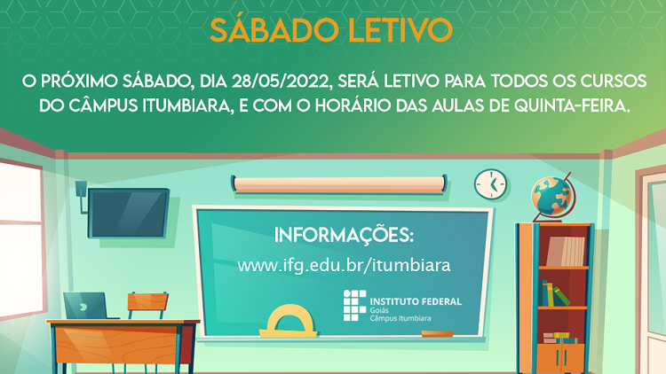 Sábado Letivo dia 28/05/2022, como horário de quinta-feira
