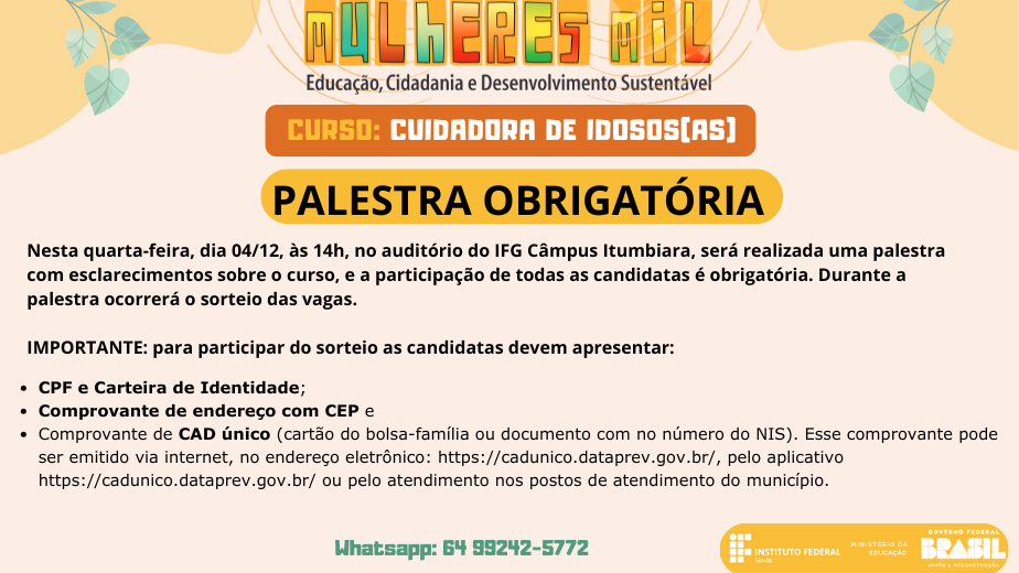 Em caso de dúvidas, entre em contato pelo WhatsApp: (64) 99242-5772.