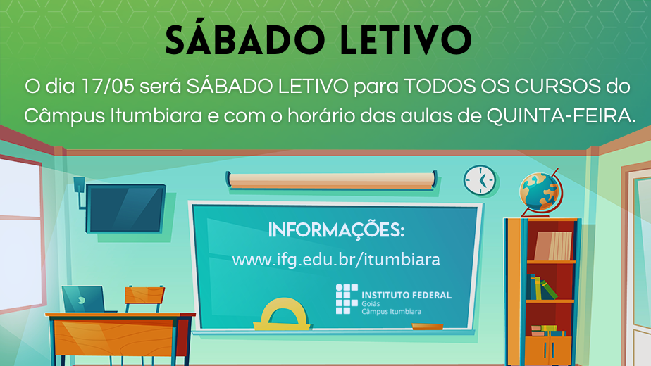 Você está aqui: Página inicial > Comunicados do Câmpus Itumbiara > Sábado Letivo: 17/5/2025