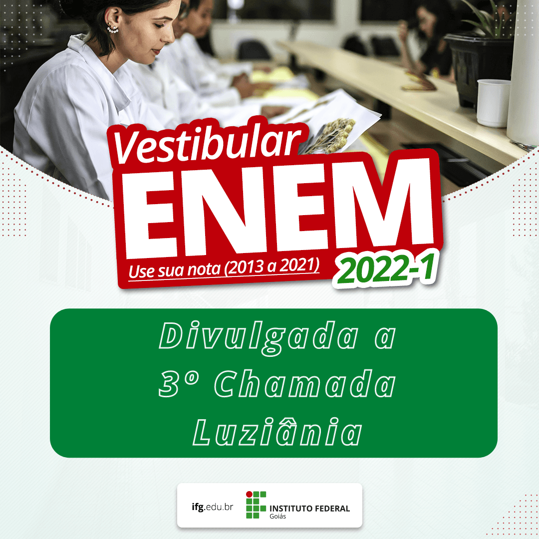 Saiu a lista dos convocados na 3º chamada do Vestibular ENEM do Câmpus Luziânia Confira os convocados em:...