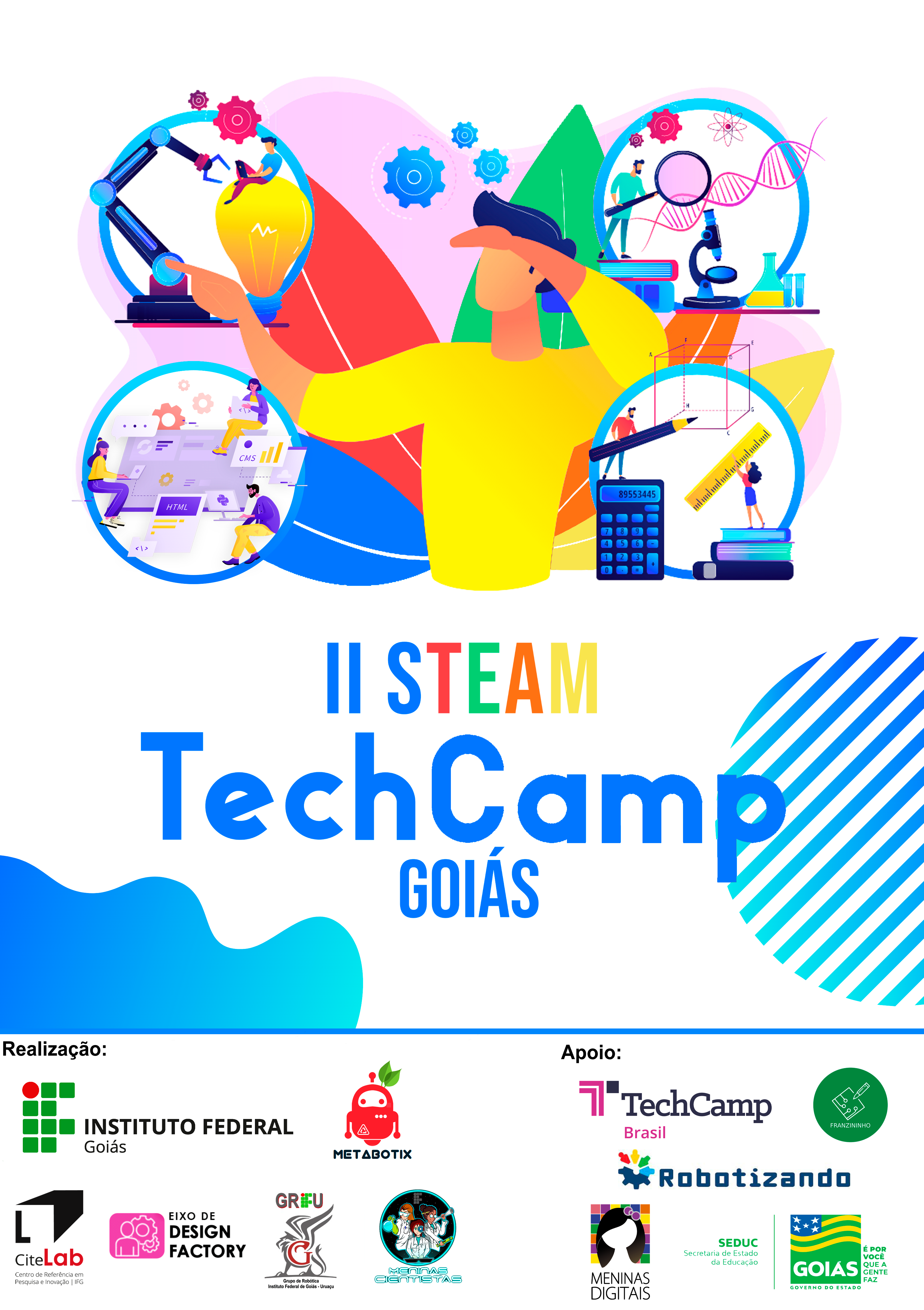 O Eixo de Design Factory e o Laboratório IFMaker do Centro de Referência em Pesquisa e Inovação do Instituto Federal de Goiás (CiteLab IFG), com apoio dos Laboratórios do IFG (Meninas Cientistas, Metabotix e Grifu), Departamento de Estado dos EUA, Embaixada dos EUA no Brasil e o Laboratório de Sistemas Integráveis Tecnológico (LSI-TEC) da Escola Politécnica da Universidade de São Paulo (Poli-USP) apresentam o II STEAM TechCamp Goiás.