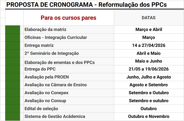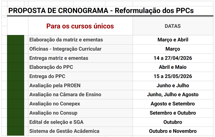Cronograma e Planejamento 2026 para a Reformulação dos PPCs