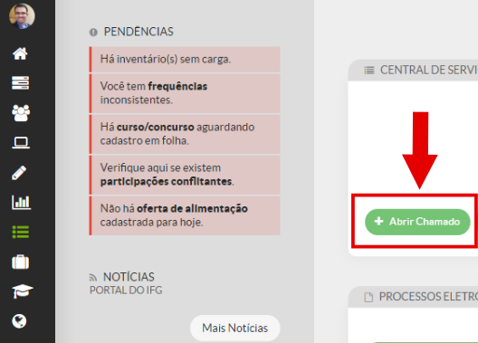 A partir de 23 de setembro de 2019, para realizar solicitação de suporte ou serviço de TI, deverá ser aberto chamado no sistema SUAP conforme instruções abaixo:
