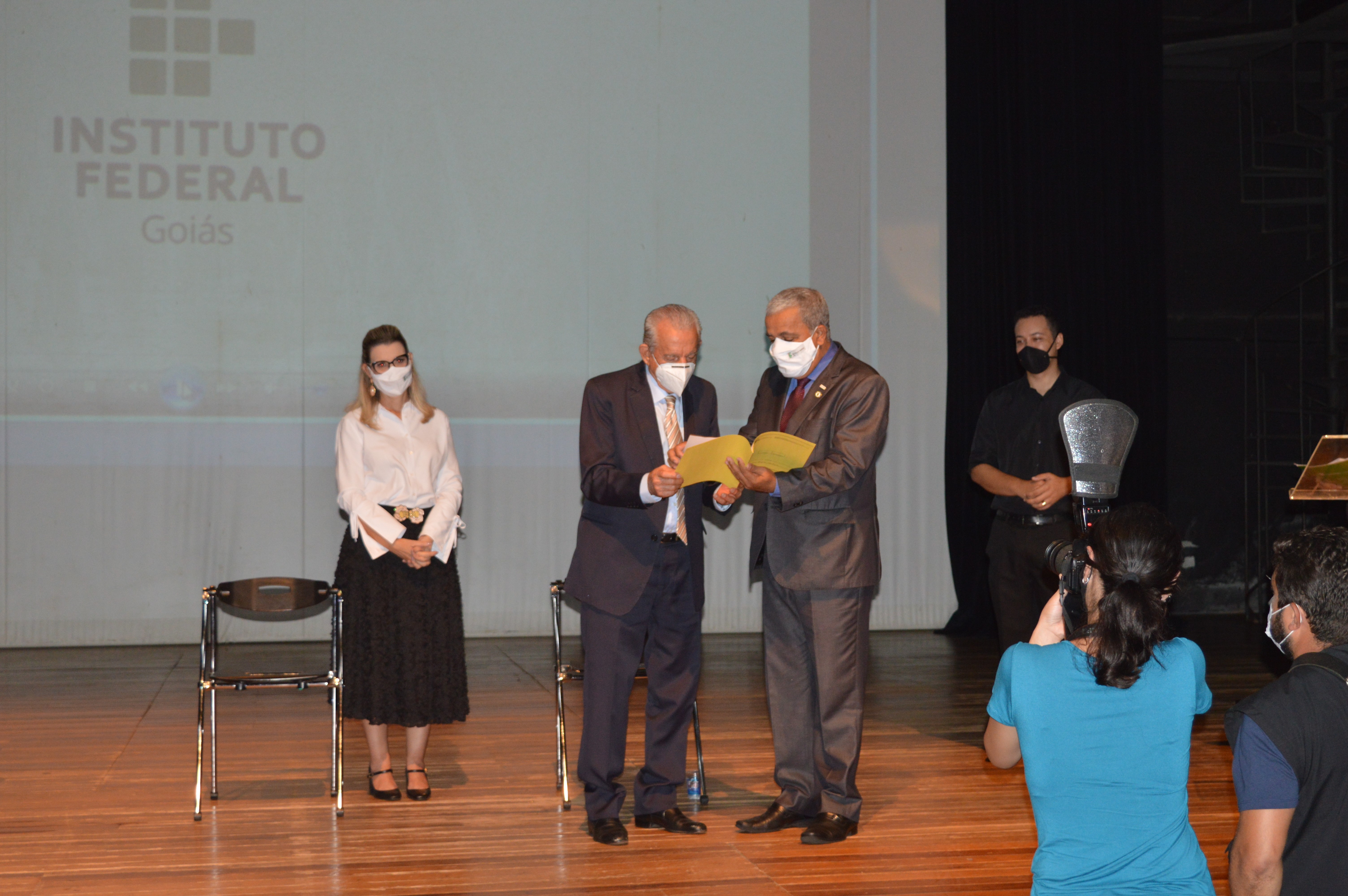 “Eu tenho sido premiado já ao apagar das luzes da vida pública, com homenagens e fatos que realmente me trazem emoções permanentes. Eu ando me emocionando até dormindo. Eu acordo, resultado de sonhos que já se passaram na minha vida real. E eu devo dizer que me encontro emocionado”. Com essas palavras, o ex-prefeito Iris Rezende Machado, abriu o seu discurso para agradecer a homenagem que recebeu do Instituto Federal de Educação, Ciência e Tecnologia de Goiás (IFG), em 7 de dezembro do ano passado, durante a solenidade de entrega do restauro do Pórtico do Instituto Federal de Goiás – Câmpus Goiânia, edificação construída em 1942 e símbolo do Batismo Cultural de Goiânia.