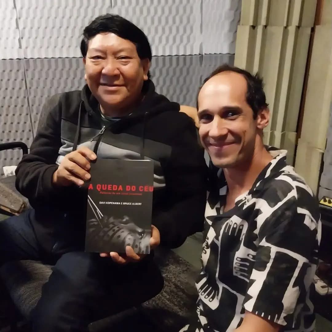 Durante o trabalho, o professor se encontrou com o xamã e escritor do livro Davi Kopenawa para gravar algumas falas e sons da floresta e dos animais que ele reproduz. "Durante o encontro, pedimos para Davi reproduzir o som de wishia, o sopro vital da floresta, e ele prontamente começou a povoar o estúdio não somente com sons de respiração que nunca havíamos escutado antes, mas trouxe também vozes de animais, cigarras, vento, aves. Mais do que habilidosas imitações, Davi parecia estar dialogando com estes seres, falando seu idioma, trazendo-os para perto. Diversos trechos dessa gravação estão presentes no filme, e ainda os guardo como um amuleto em meu acervo sonoro", explica.