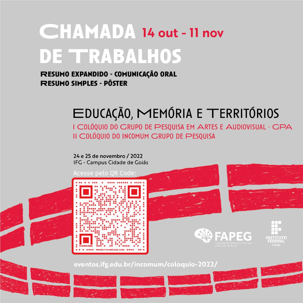 Realização dos grupos de pesquisa Incomum e GPA, dos câmpus Aparecida de Goiânia e Cidade de Goiás, respectivamente, e financiado pela FAPEG, o evento será presencial nos dias 24 e 25...
