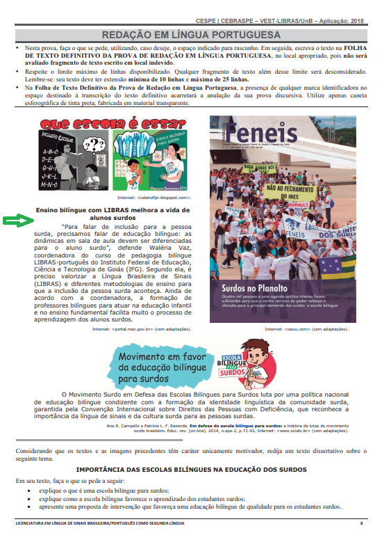 Página da prova de redação - Licenciatura em Língua de Sinais UnB