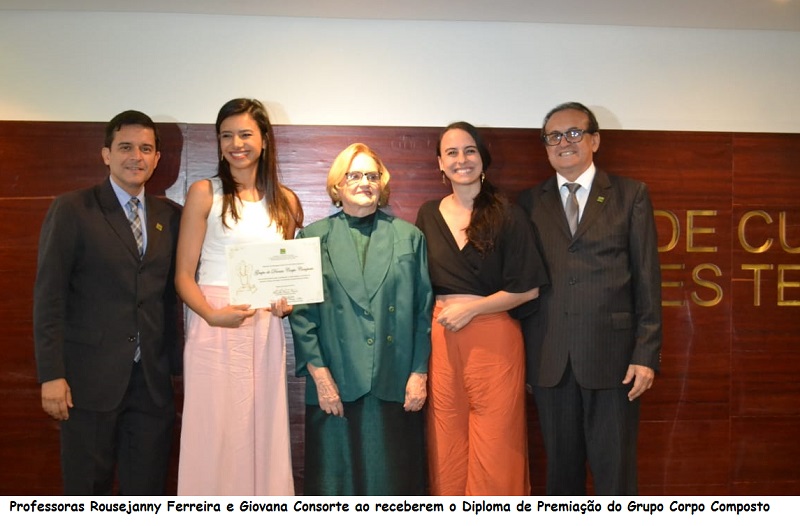 O curso de Licenciatura em Dança e o grupo de dança Corpo Composto, do IFG – Câmpus Aparecida de Goiânia, foram premiados pelo Conselho Estadual de Cultura por terem se destacado “no fazer e no promover cultura em Goiás” no ano de 2018. As condecorações foram entregues durante cerimônia do Troféu Jaburu, no Palácio das Esmeraldas, no dia 29 de agosto. O curso de Licenciatura em Dança recebeu a Medalha de Destaque Cultural do Ano e o grupo Corpo Composto recebeu o Diploma de Destaque do Ano, respectivamente, entregues nas mãos da diretora-geral do Câmpus Aparecida de Goiânia, professora Ana Lucia Siqueira de Oliveira, e das professoras e coordenadoras do grupo Corpo Composto, Rousejanny Ferreira e Giovana Consorte.