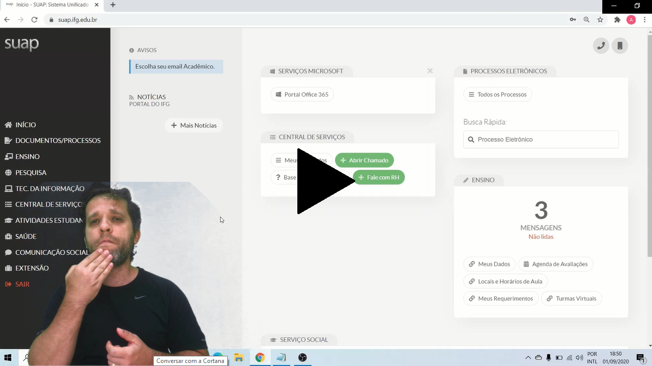 Tradução em Libras: Thiago Cardoso Aguiar - professor do curso de Licenciatura em Pedagogia Bilíngue do IFG Aparecida de Goiãnia