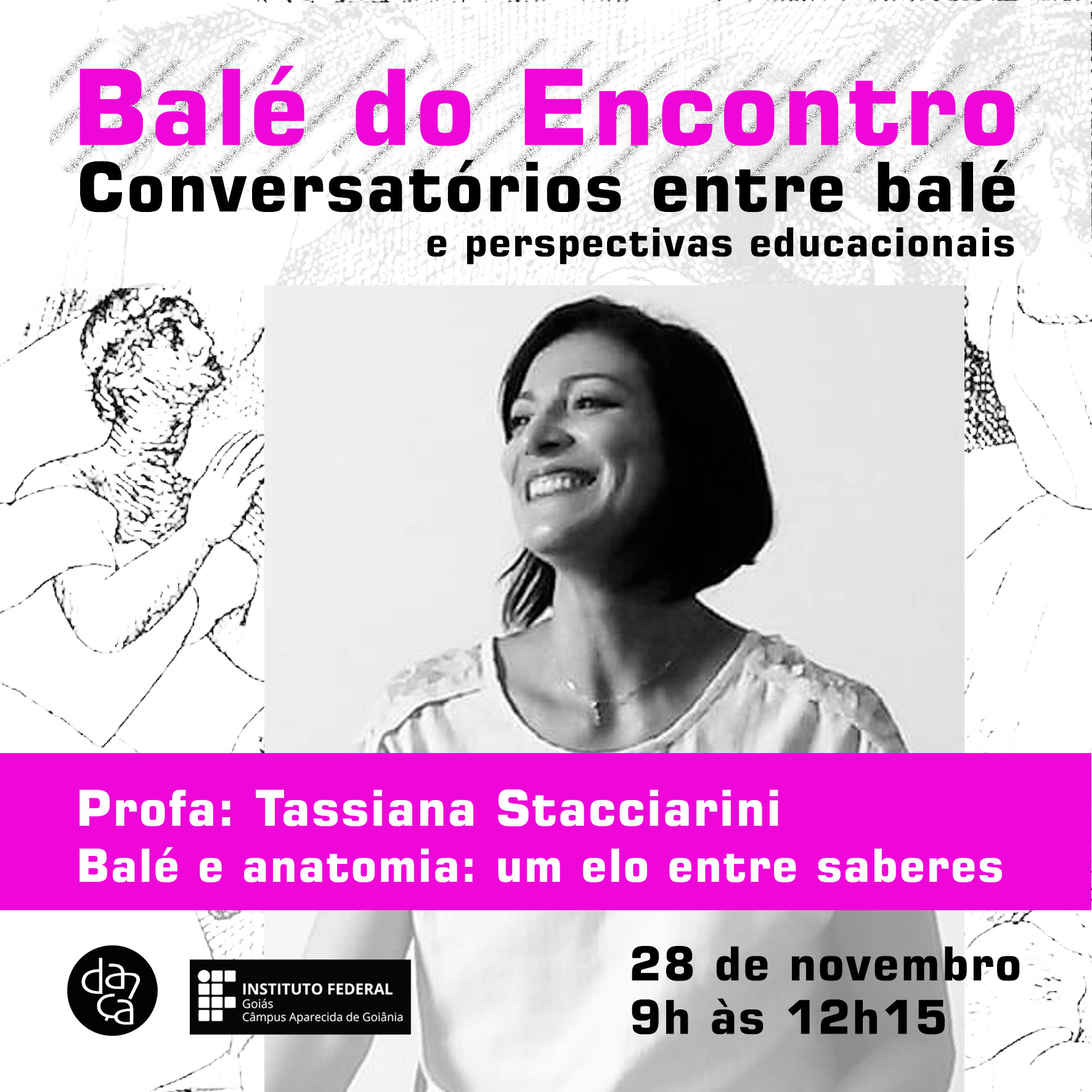 Tassiana Stacciarini desenvolveu o Anatomyballet – uma abordagem que é fundamentada na anatomia e na mecânica do movimento. Atualmente, é jurada e ministra workshops em festivais nacionais. Desenvolve um trabalho de personal para bailarinos e assessoria para professores. Ministra aulas de ballet clássico na Quasar Cia de Dança, no Corpo de Baile Dança e Cia e na Academia Yoshida, em Goiânia.