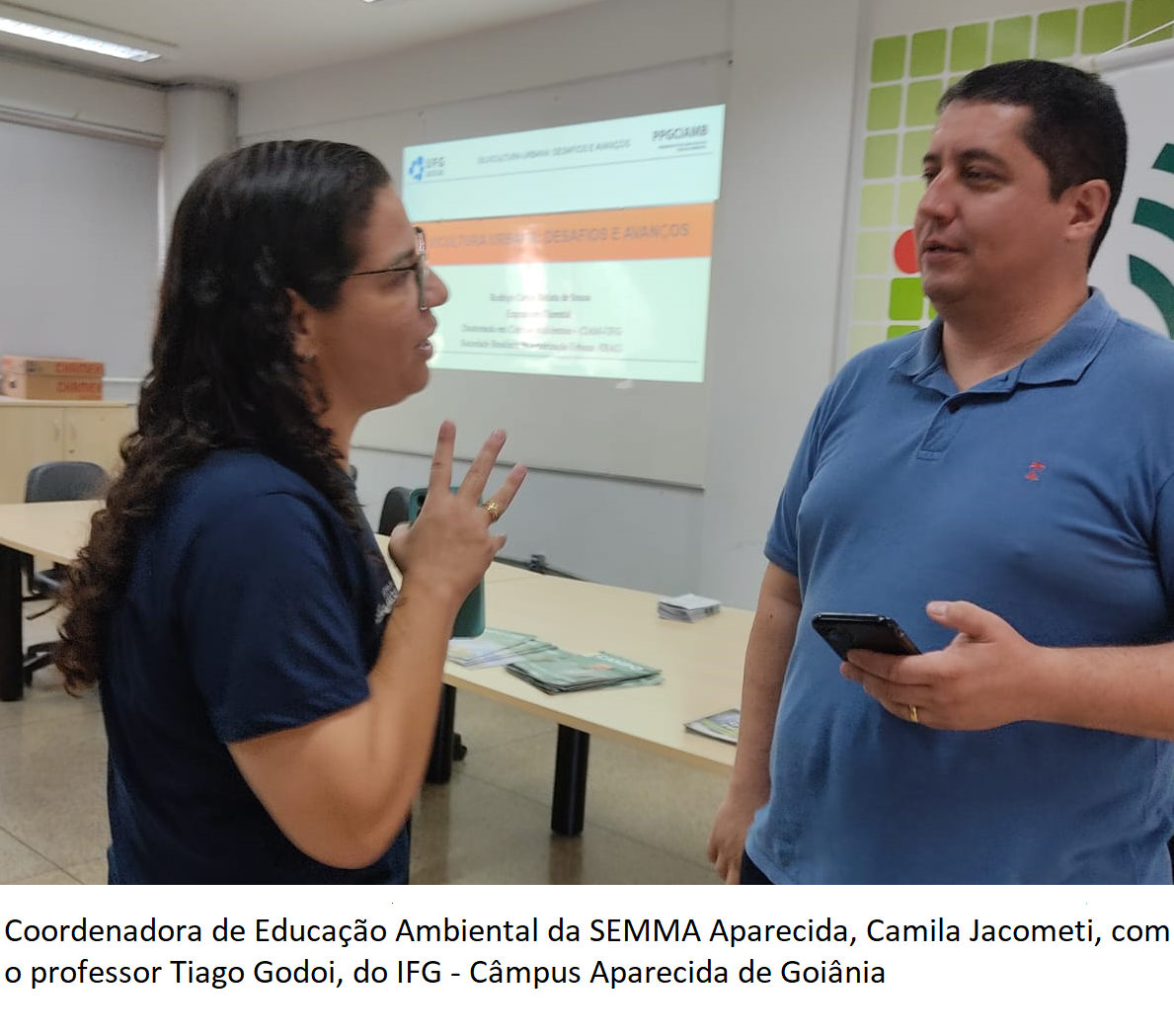 O evento conta com a presença da secretária Municipal de Meio Ambiente de Aparecida de Goiânia (Semma), Valéria Peterson; o ambientalista e assessor de Comunicação da Prefeitura de Aparecida de Goiânia, Rafael Freitas; a coordenadora de Educação Ambiental da Semma , Camila Jacometi; o presidente da Rede Sustentabilidade de Aparecida de Goiânia, Marcos Marrom; professores do IFG - Câmpus Aparecida de Goiânia, entre eles Tiago Godoi, da área de Engenharia Ambiental, e estudantes dos cursos do ensino médio técnico.