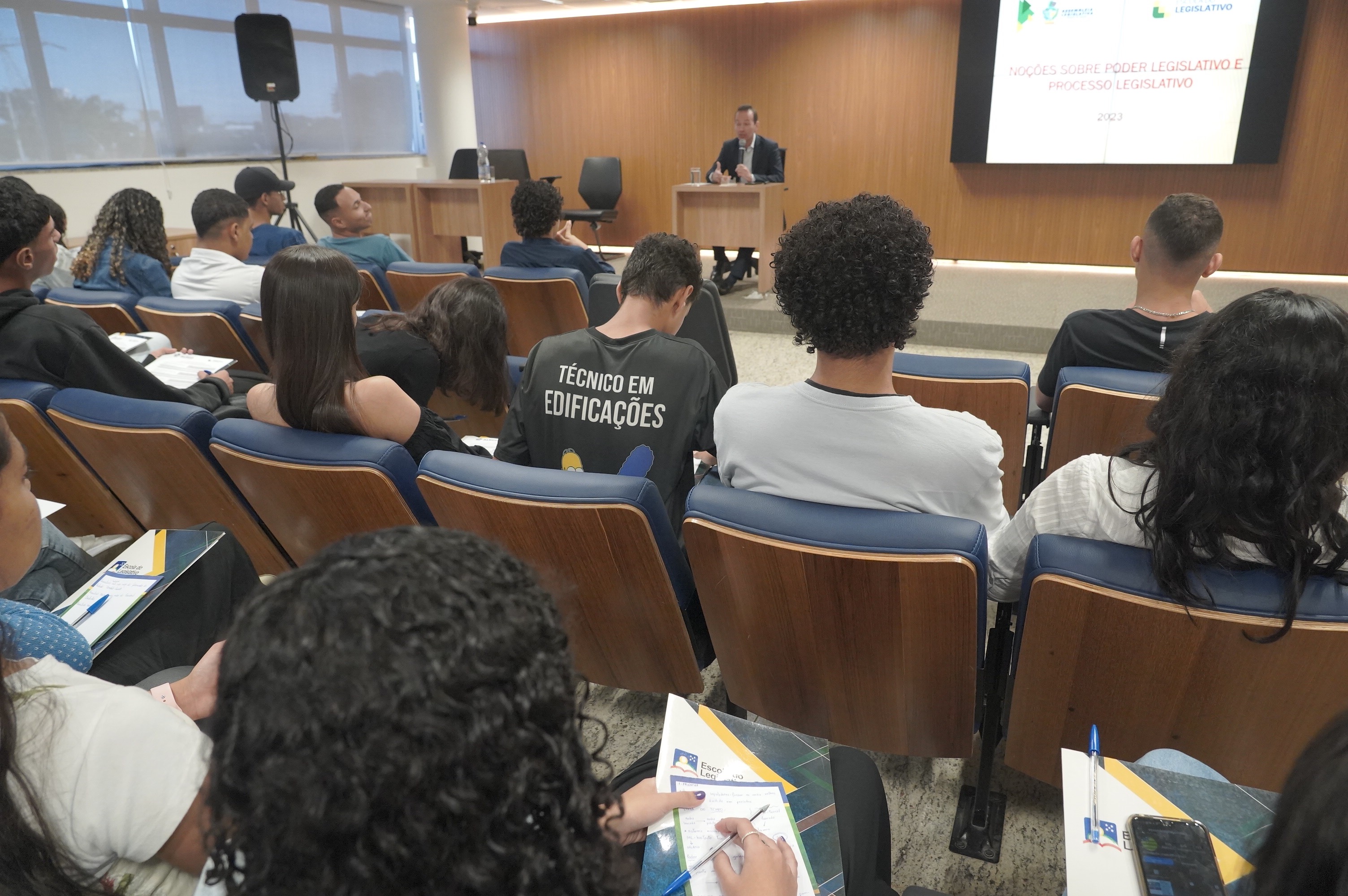 Acompanhados do professor Moisés Gregório da Silva, a turma de 1º ano do curso participou do programa Escola no Legislativo