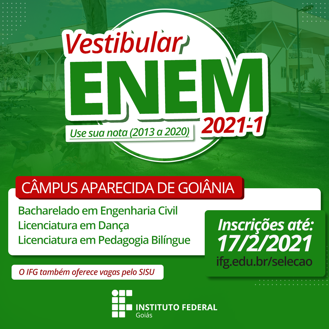 O Instituto Federal de Goiás (IFG) abriu nesta sexta-feira, 17, inscrições para um novo vestibular, destinado ao preenchimento de vagas remanescentes para o primeiro semestre letivo deste ano. São ofertadas 95 vagas em nove cursos, nos câmpus Aparecida de Goiânia, Cidade de Goiás, Goiânia, Inhumas, Jataí e Luziânia.