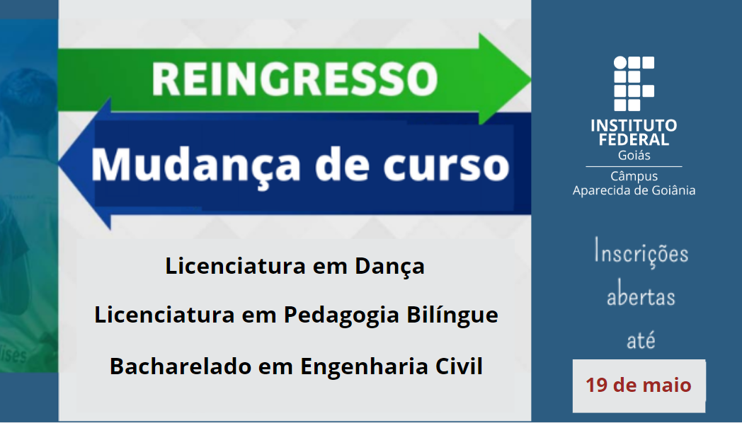 Inscrições para reingresso e mudança de curso no IFG Aparecida podem ser feitas até 19 de maio