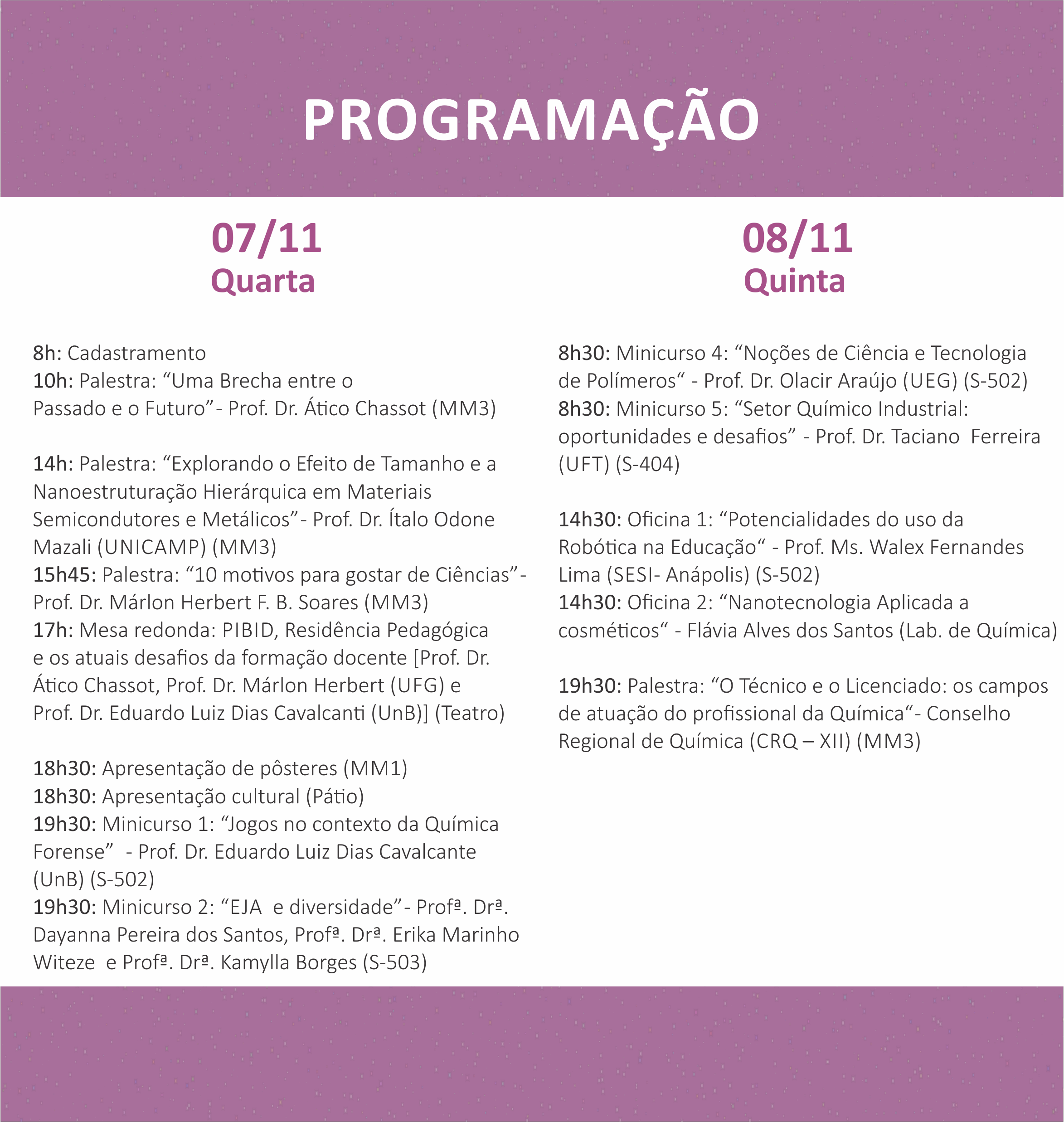 7º Simpósio de Química do IFG Anápolis está com inscrições abertas