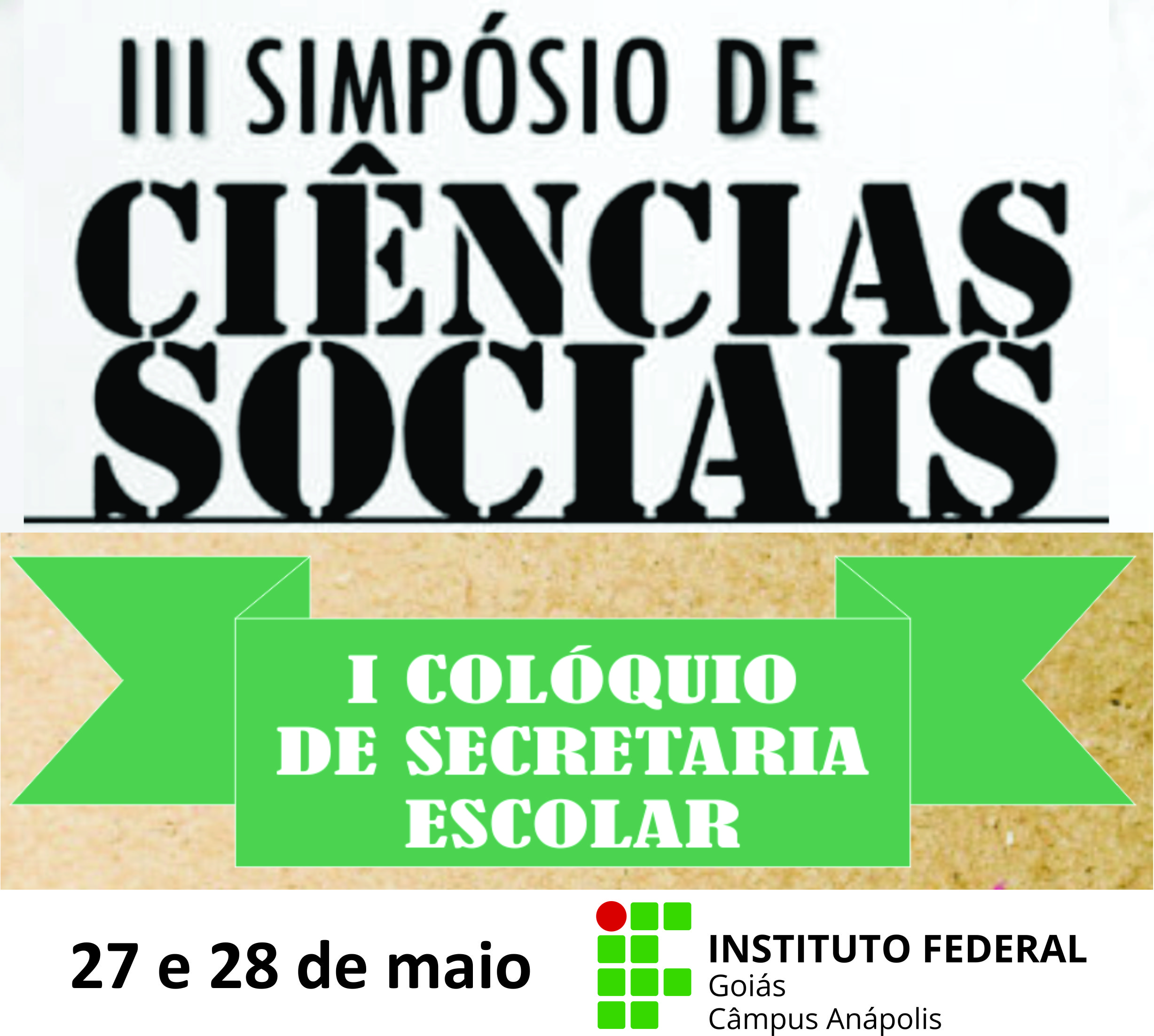 Dois eventos educacionais prometem movimentar o Câmpus Anápolis do Instituto Federal de Goiás (IFG) – Câmpus Anápolis na próxima semana: III Simpósio de Ciências Sociais e I Colóquio de Secretaria Escolar. Os dois encontros foram articulados para serem realizados simultaneamente nos dias 27 e 28 de maio e oferecerão uma série de atividades tais como oficinas, palestras, mostra de cinema, mesas-redondas, minicursos, apresentações musicais e cinedebate. A abertura oficial do Simpósio e do Colóquio será realizada em conjunto no teatro do Câmpus Anápolis às 19 horas. Inscrições para os eventos ainda estão disponíveis neste link.