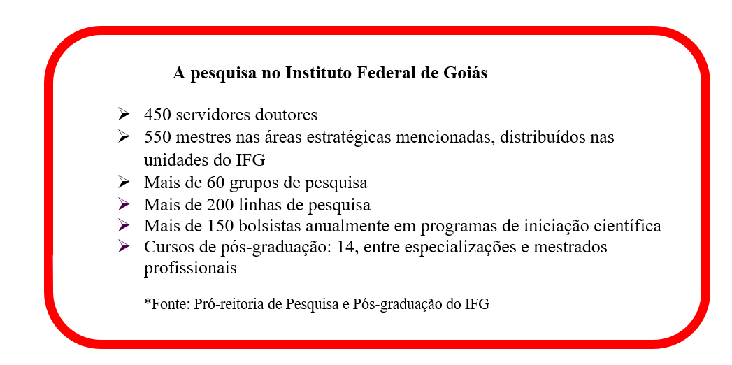 Considerando o estímulo ao desenvolvimento da pesquisa em âmbito nacional, o diretor de Pesquisa da Proppg, Thiago Eduardo Pereira Alves, ressalta que “A ideia de criação do Centro de Pesquisa foi concebida em diálogos da Pró-Reitoria de Pesquisa e Pós-Graduação com o Reitor, no sentido do melhor aproveitamento da estrutura já existente no antigo almoxarifado, arquivo e centro de distribuição, com a demanda crescente dos pesquisadores nas áreas da pesquisa, inovação e extensão tecnológica do IFG”, afirma.