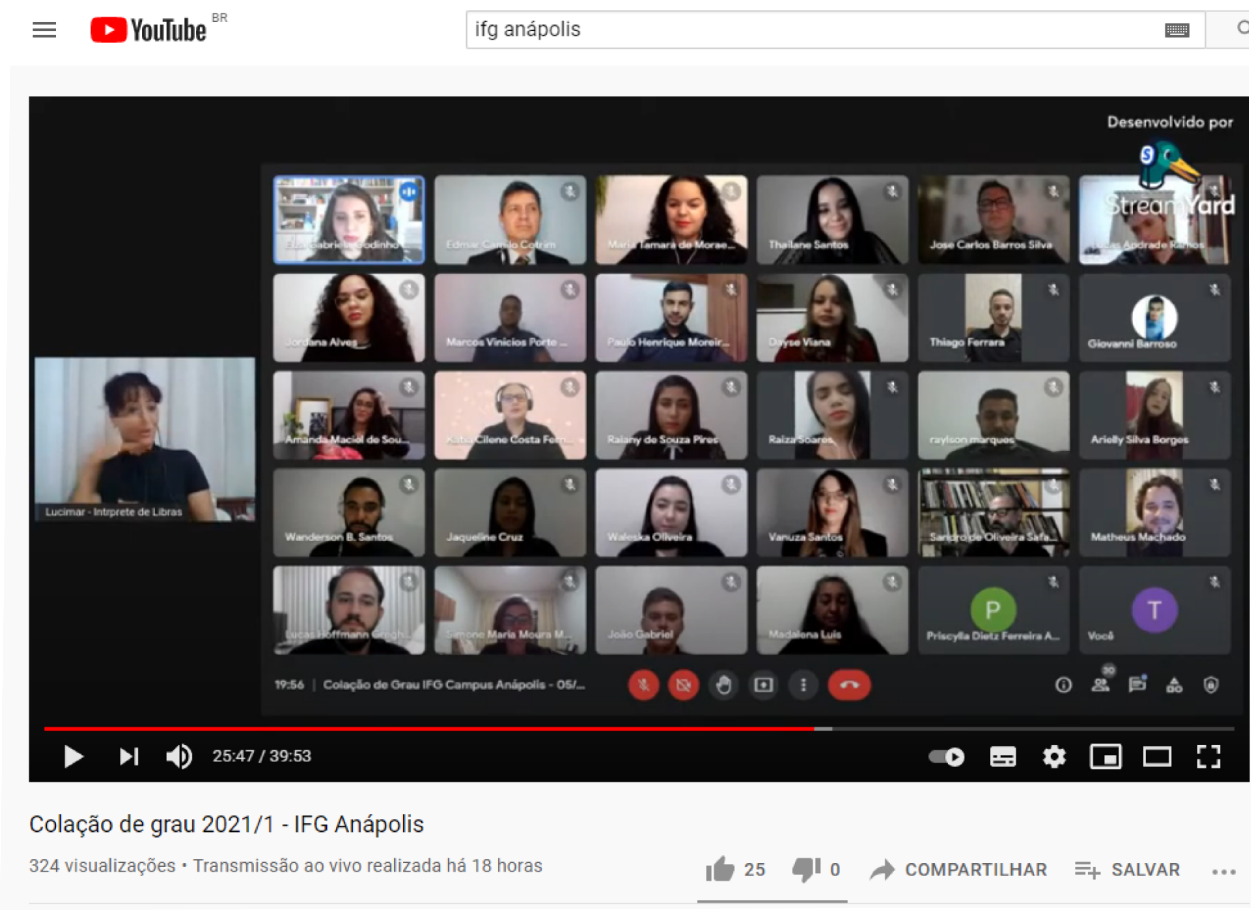 A solenidade foi transmitida no canal do câmpus no YouTube