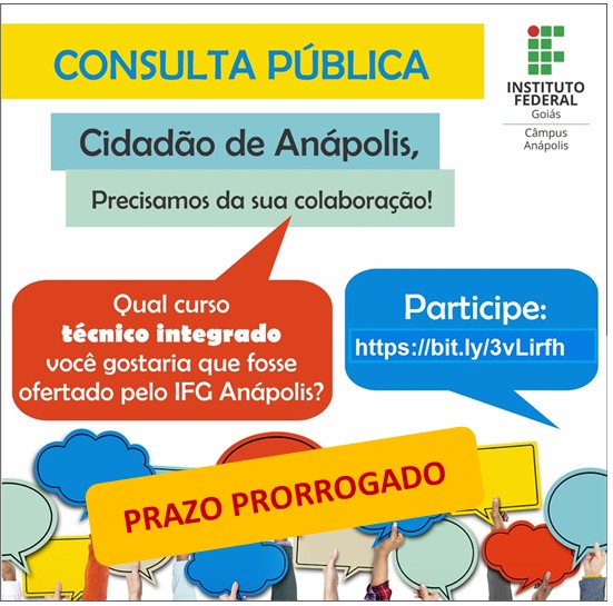 O prazo para consulta sobre novos cursos técnicos para o Câmpus Anápolis foi prorrogado até o próximo dia 12 de setembro