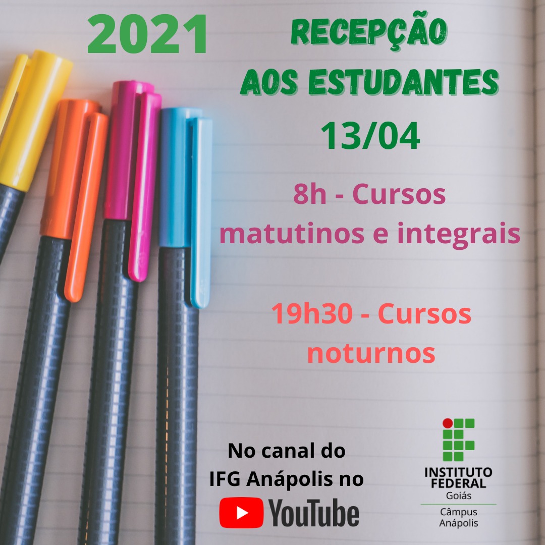 IFG Anápolis promoverá recepções virtuais aos estudantes na próxima terça, 13