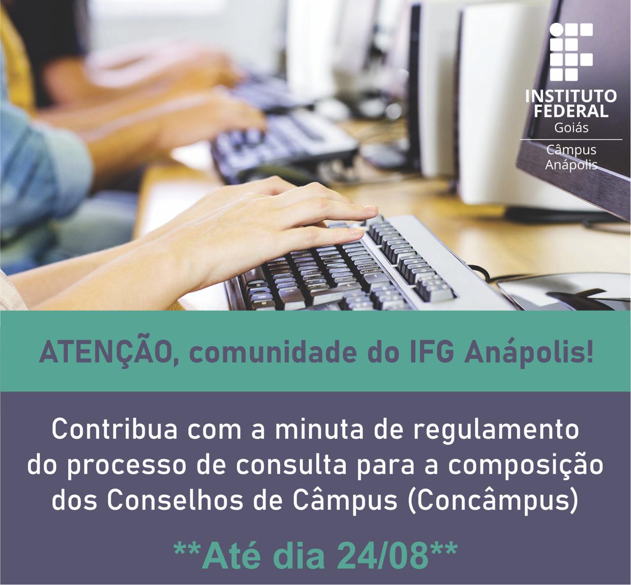 Comunidade acadêmica do IFG Anápolis pode enviar contribuições para minuta de regulamento do Concâmpus