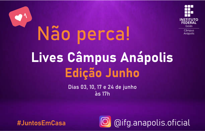 As entrevistas serão realizadas no perfil do Câmpus no Instagram (@ifg.anapolis.oficial) e fazem parte da campanha Juntos em Casa