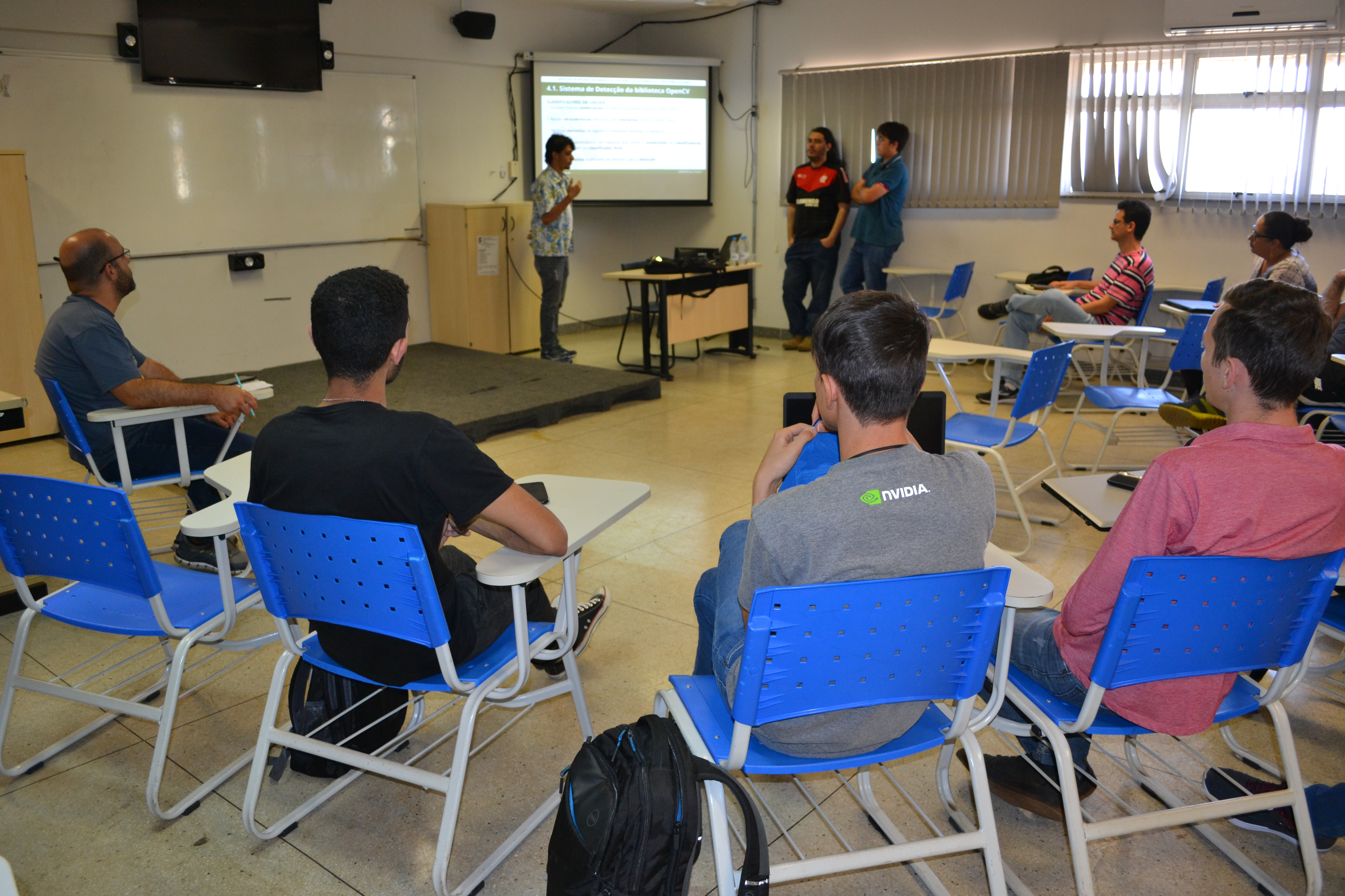 Os estudantes apresentaram pesquisa desenvolvida por eles durante reunião do grupo de estudos de Computação