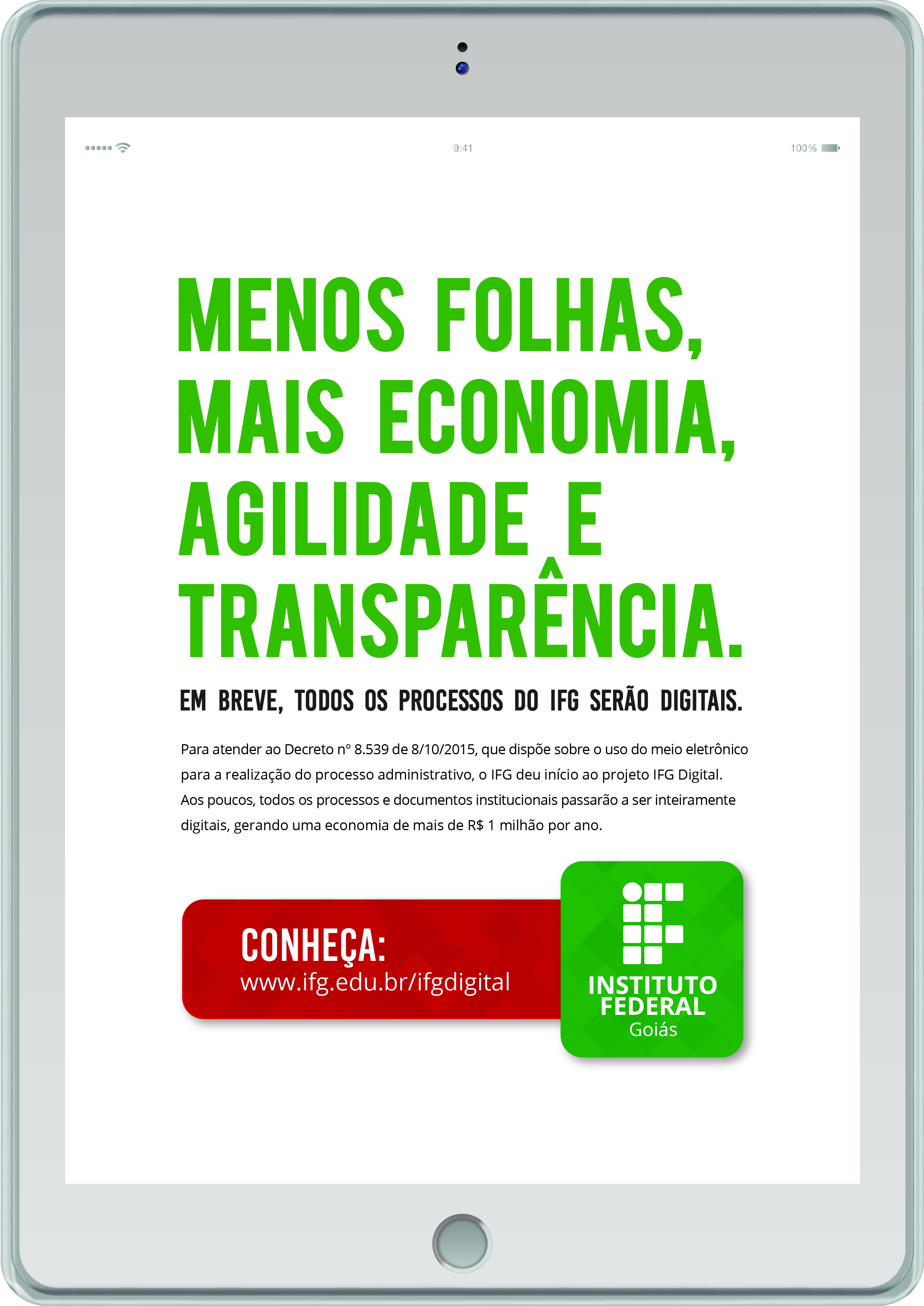 Agilidade, redução de custos, produtividade e transparência. Esses são alguns dos elementos visados pelo Projeto IFG Digital, que tem sido desenvolvido por uma comissão de servidores que contempla representantes das pró-reitorias, do gabinete e de setores estratégicos da Instituição, como a diretoria de tecnologia da informação, comunicação social e o setor de protocolo do Instituto Federal de Goiás (IFG). O projeto, que tem como objetivo a construção de uma infraestrutura pública de processos e documentos administrativos eletrônicos, foi apresentado a gestores presentes na reunião do Colégio de Dirigentes (Codir), realizada na terça-feira, 30 de abril.