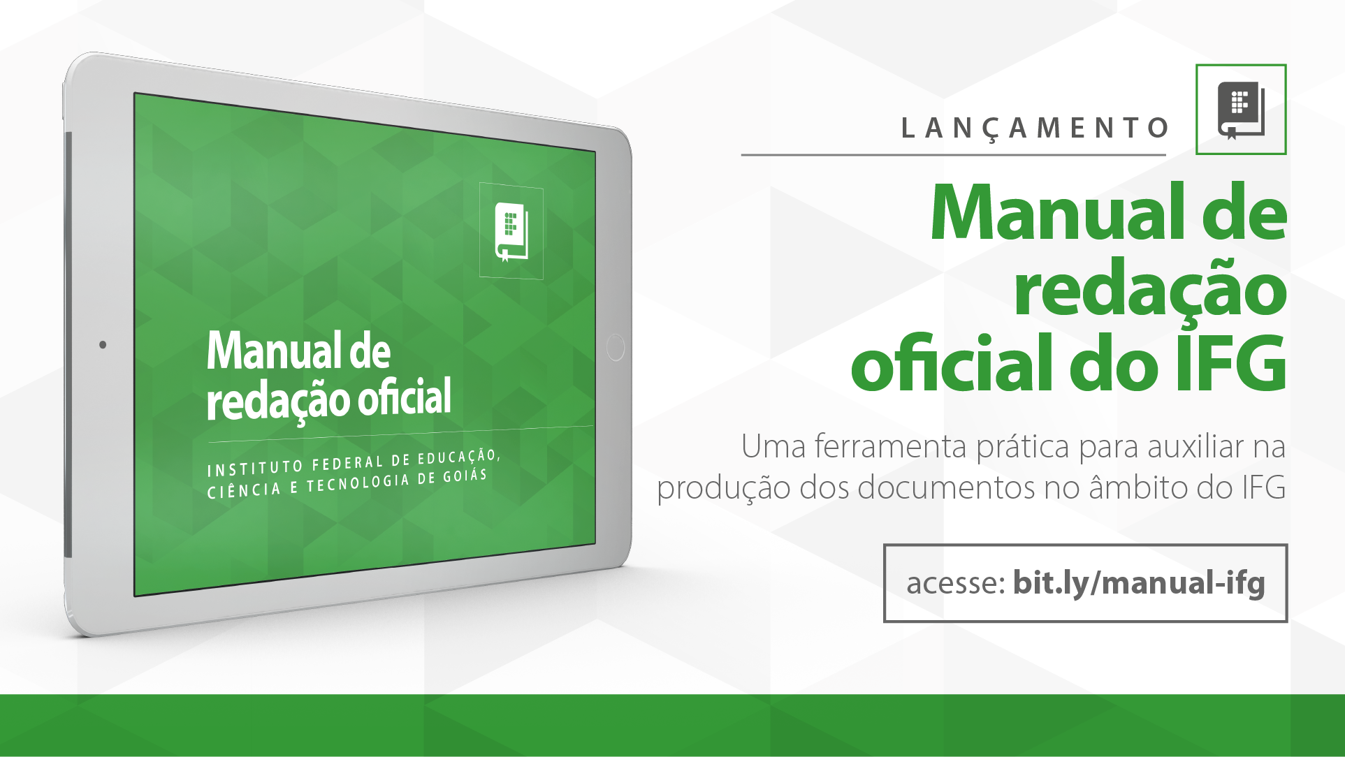 Você está aqui: Página inicial > Editais > Pesquisa e Inovação - Em andamento > IFG > Câmpus > Inhumas > Notícias do Câmpus Inhumas > IFG publica manual de redação oficial